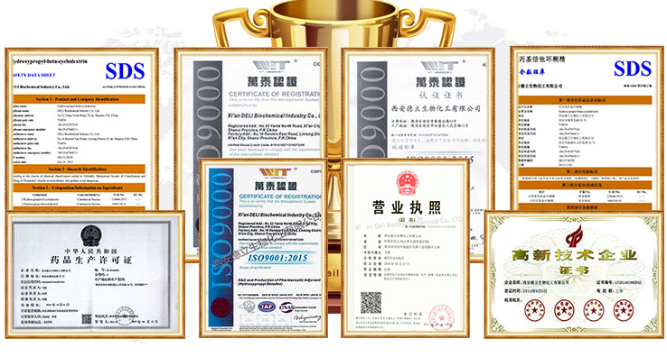 Xi'an Deli Biochemische Industrie Co., Ltd. iseen hightech onderneming gespecialiseerd in onderzoek en ontwikkeling, productie en verkoop van cyclodextrine en zijn derivaten. Sinds de oprichting op 27 augustus 1999 heeft het bedrijf zich gehouden aan het kwaliteitsbeleid van "focus op accessoires, kwaliteit eerst, oprechte service, streven naar eersteklas". Na meer dan 20 jaar hard werken en ontwikkeling heeft het bedrijf momenteel de producten DELI Brand Hydroxypropyl Betadex, DELI Brand Betadex Sulfobutyl Ether Sodium. De bovenstaande producten zijn geregistreerd en ingediend bij de FDA.