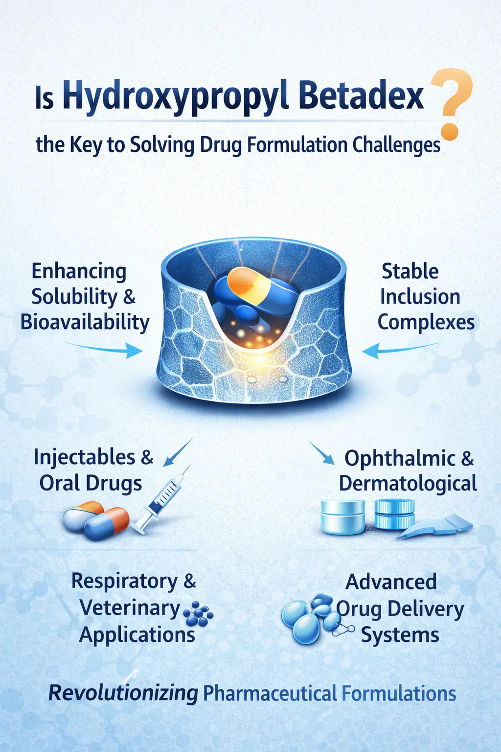 Het is waar datHydroxypropyl Betadexis de sleutel tot het oplossen van veel van de problemen die zich voordoen bij het maken van nieuwe medicijnen. De unieke moleculaire verpakkingskwaliteiten, het hoge veiligheidsprofiel en het brede scala aan toepassingen maken het vandaag de dag tot een essentieel hulpmiddel voor farmaceutische wetenschappers. Dit cyclodextrineproduct verandert de wetenschap van de farmaceutische bereiding op veel manieren, bijvoorbeeld door medicijnen die niet gemakkelijk oplossen beter biologisch beschikbaar te maken en door nieuwe manieren mogelijk te maken om medicijnen af te leveren. De stof heeft een geschiedenis van succes bij injecteerbare, orale en gespecialiseerde toepassingen, wat aantoont hoe nuttig het is om aan ingewikkelde voorbereidingsbehoeften te voldoen, terwijl de patiënten veilig blijven en de effectiviteit van de behandeling wordt gegarandeerd.