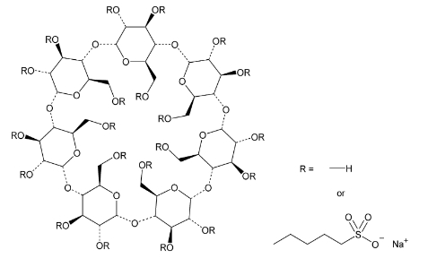 Synoniem: sbe-beta-cd; Sulfobutylether beta-cyclodextrine; Captisol. Beta-cyclodextrine sulfobutylether natriumzouten.